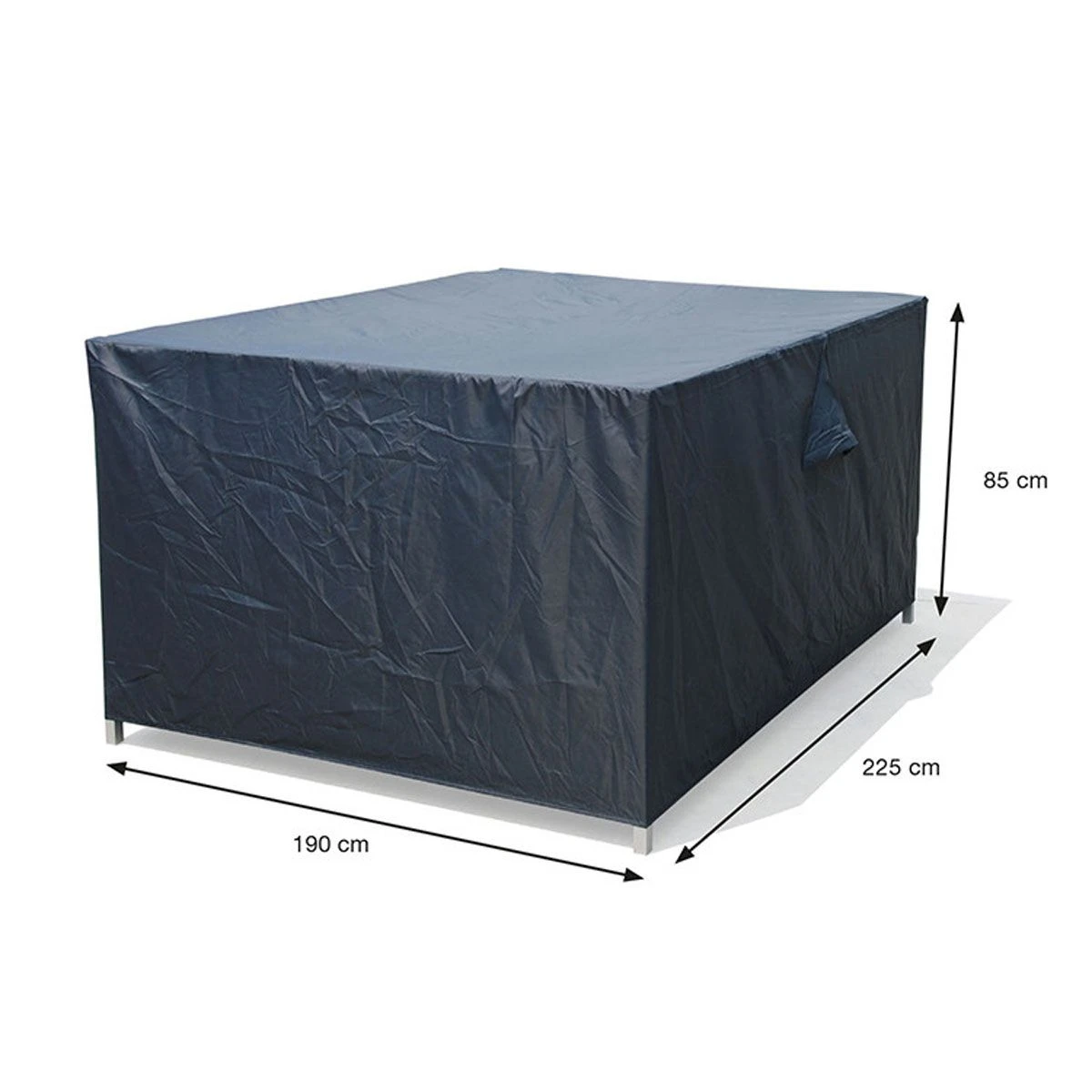 Ben je op zoek naar een beschermhoes voor jouw tuinset? Deze prettige tuinsethoes van kwaliteitsmerk Garden Impressions zorgt ervoor dat je langer plezier hebt van je tuinset. Om de levensduur van je tuinset te verlengen, raden wij aan om deze af te dekken in de wintermaanden. De tuinset beschermhoezen van Garden Impressions zijn gemaakt van hoogwaardig polyester met een ademende coating. Deze coating zorgt ervoor dat hoes waterbestendig is. De beschermhoes is niet volledig waterdicht, maar waterafstotend. Het is een flexibele ademende coating, waardoor de beschermhoes in de wintermaanden ook nog flexibel blijft. Doordat de tuinsethoes niet volledig waterdicht is, is aan te raden om een afstand te creëren tussen de meubelen en de hoes. Het water kan er dan gemakkelijker afstromen en de meubelen kunnen niet verstikken. De beschermhoes is voorzien van ventilatie driehoeken zodat het tuinmeubel kan ademen. De tuinset beschermhoes kan gemakkelijk om de tuinset worden bevestigd. Op alle hoeken zit onderaan een elastieken band om de hoes strak te houden. We raden je aan om de tuinkussens niet onder de hoes te laten liggen. Mochten de kussens al nat zijn geworden, is dat niet erg, maar zorg er wel voor dat ze droog worden opgeborgen. De tuinsethoes met afmeting 225x190xH85 cm.