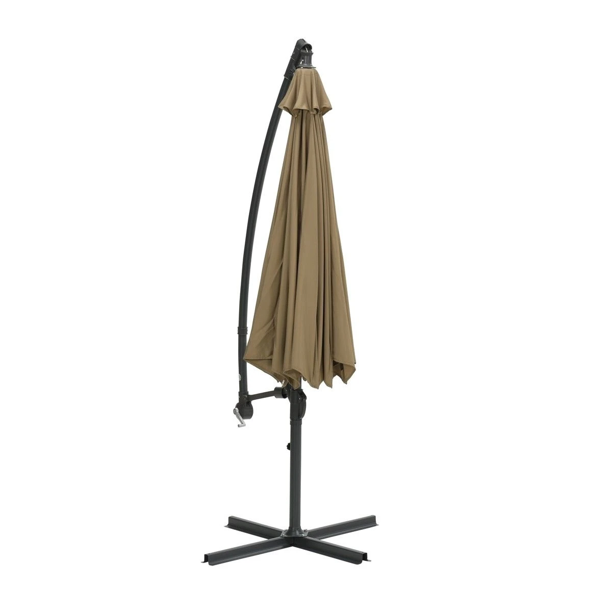De Athene zweefparasol is een absolute aanrader als je op zoek bent naar een zweefparasol met een uitstekende prijs kwaliteit verhouding. De Athene parasol is eenvoudig te bedienen, licht van gewicht en gemakkelijk te plaatsen. Met de Athene parasol koop je voor een leuk bedrag een complete vrijhangende parasol inclusief kruisvoet. De parasol is uitgevoerd in een aluminium frame, dit zorgt er voor dat de parasol niet kan roesten, maar ook voor gemak in het gebruik door het lichte gewicht. Het aluminium frame is voorzien van een stevige poeder coating. Deze coating is dusdanig sterk dat het kras- en stootvast is. Het parasoldoek is vervaardigd uit 180 grams polyester. Het doek is voorzien van een windvanger en is spatwaterdicht. De parasol draai je eenvoudig open door middel van het draaimechanisme. De baleinen van deze parasol zijn gemaakt van glasfiber, dit materiaal is zeer buigzaam en zorgt voor een mooi strak doek dat tegen een stootje kan. De Athene zweefparasol van kwaliteitsmerk Garden Impressions wordt geleverd inclusief praktische kruisvoet. Deze kruisvoet kan ingelegd worden in het terras. Het is belangrijk dat op de kruisvoet minimaal 60 kg wordt gelegd. De diameter van de parasolbuis bedraagt 48 mm. Na gebruik van de parasol kan je deze beschermen met een hoes speciaal voor zweefparasols. Hierdoor kun je de parasol tijdens zonnige dagen prima buiten laten staan. Bij slecht weer til je de zweefparasol gemakkelijk van de voet en berg je deze op in de schuur. Deze parasol heeft een aluminium frame in de kleur royal grey met een polyester donker grijs kleurig parasoldoek. De totale hoogte is 210 cm, waarvan het doek 190 cm hoog is en 300 cm in diameter is.