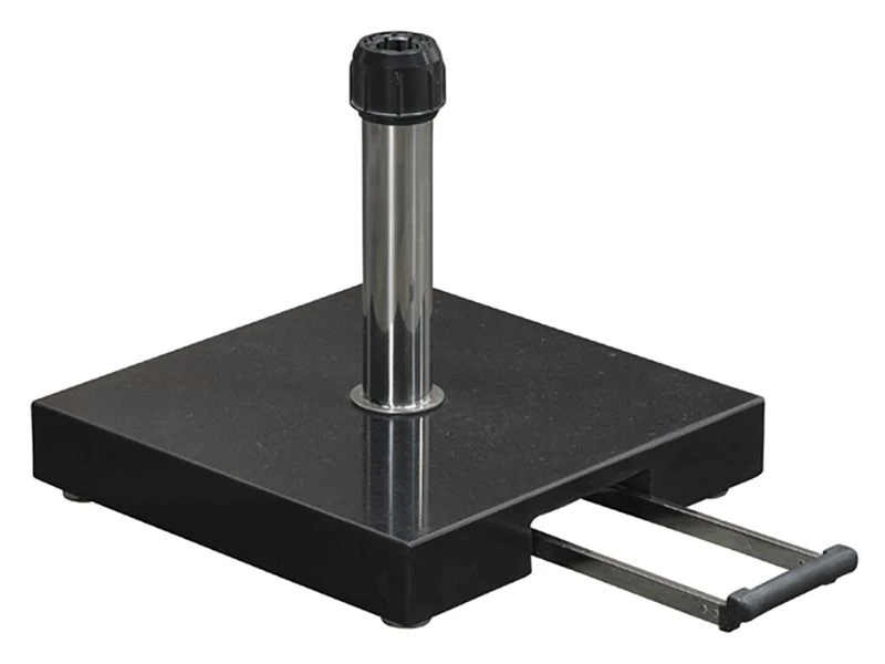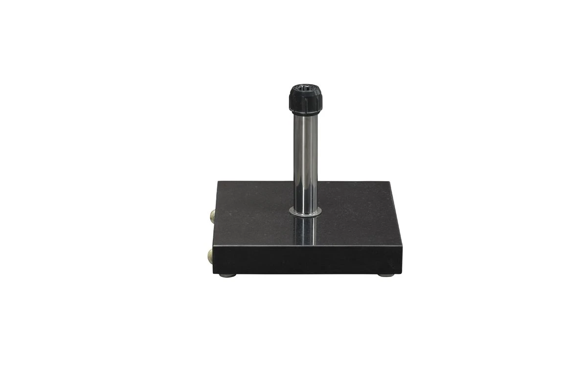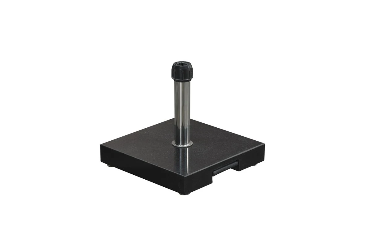 De parasolvoet is voorzien van vier wielen, die afzonderlijk van elkaar op de rem zijn te zetten. Deze wielen dienen nog te worden gemonteerd bij levering. De parasol is door middel van de draaibare, kunststof dop vast te zetten in de RVS parasolbuis. Deze natuurstenen parasolvoet heeft verder een fraaie afwerking, doordat de bovenzijde is gepolijst. Tevens is graniet onderhoudsvriendelijk en betrouwbaar.
