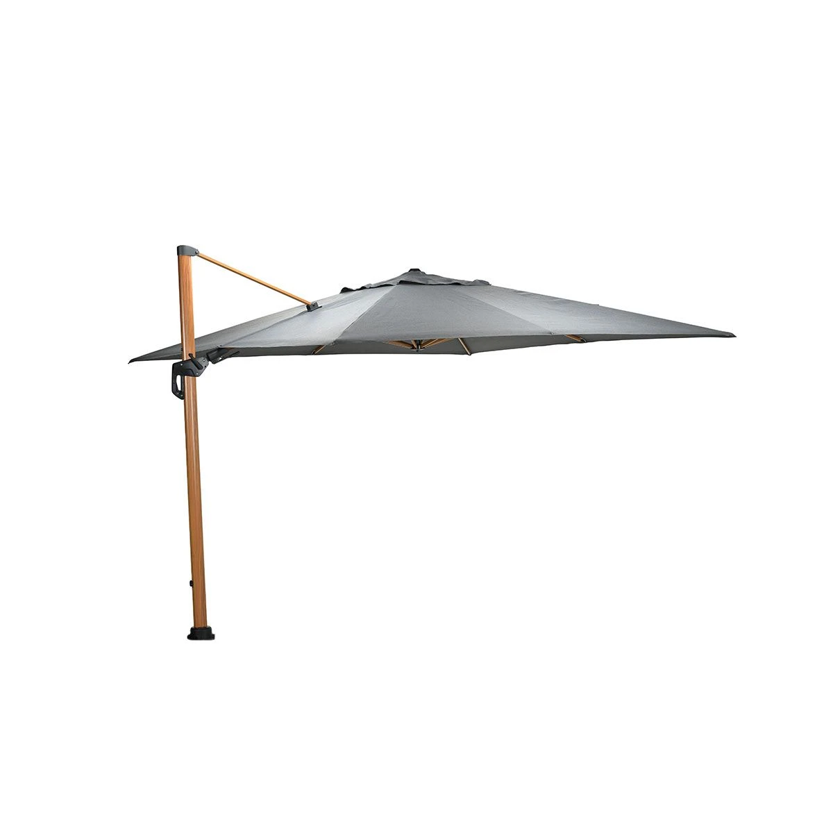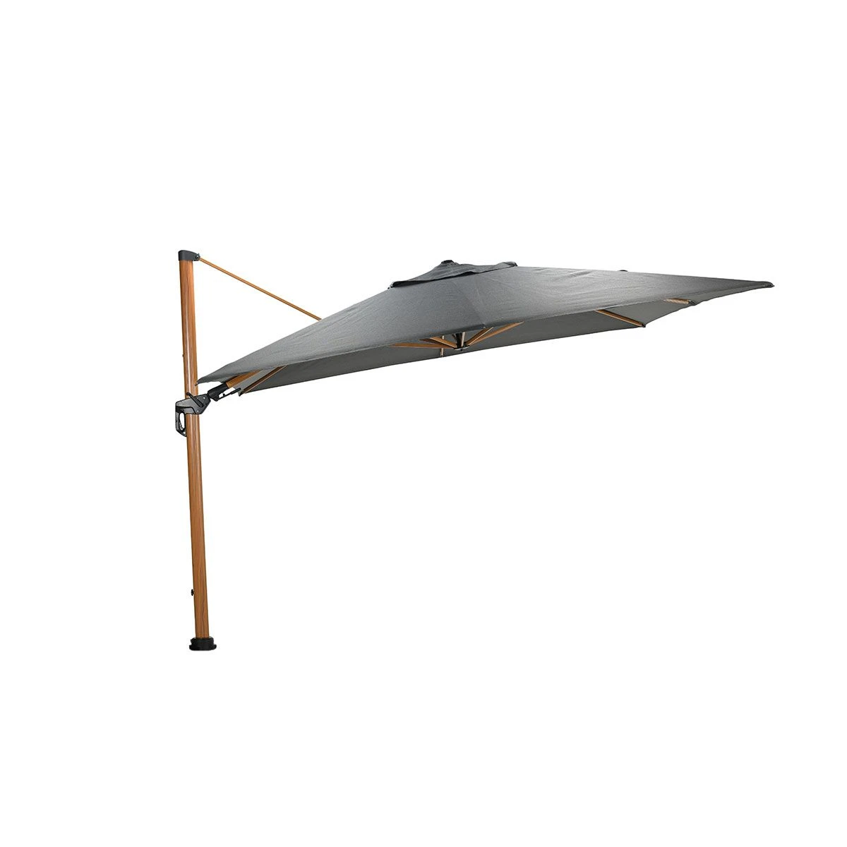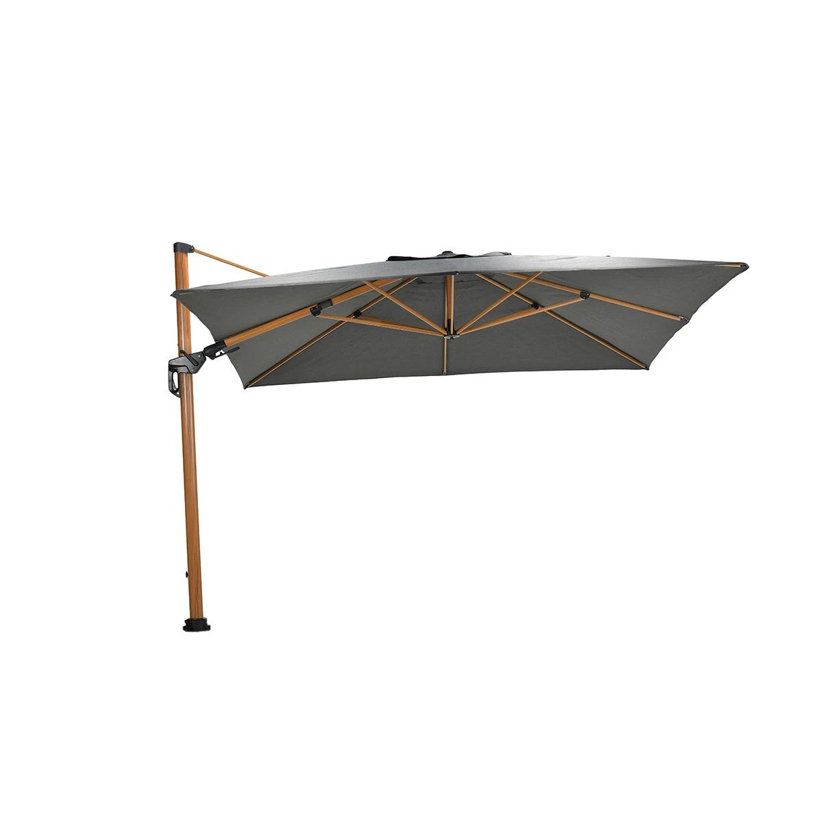 De parasol beschikt over een 280 grams polyester doek wat zorgt voor bescherming tegen de zon. Verkleuring van het doek door de zon is na verloop van tijd niet tegen te gaan. Bovendien is het doek voorzien van een brandwerende PA-coating en een windvanger, zodat de wind goed weg kan als deze onder de parasol komt. Het parasoldoek is spatwaterdicht. Het dikke aluminium frame is voorzien van een hoogwaardige kwaliteit poeder coating. Deze coating is dusdanig sterk dat het kras- en stootvast is.