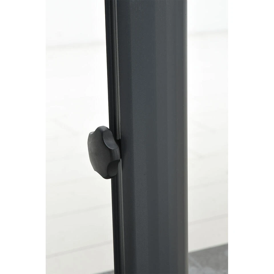 Zo is het frame gemaakt van stevig aluminium met een donker grijze coating. Het doek is gemaakt van 200 grams polyester en ook nog eens voorzien van een brandwerende PA-coating.