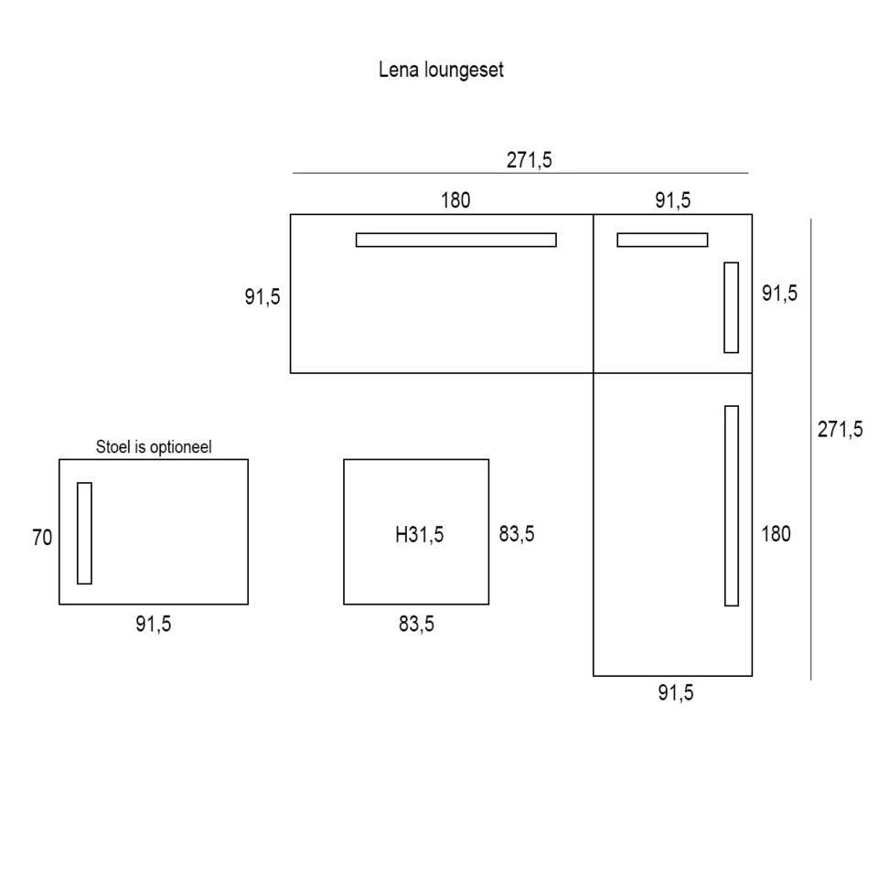 De Annabella loungeset van Garden Impressions heeft een strak design. De set kenmerkt zich door de zijtafeltjes. Deze lopen in 1 lijn door vanuit de zitting van de hoekbank. Deze zijtafeltjes geven de Annabella loungeset een ruimtelijk uitstraling. Kenmerkend aan de Annabella loungeset is niet alleen de zijtafeltjes, ook het zitcomfort van de Annabella is uniek. De loungeset heeft namelijk een lekkere diepe zit en een schuine rugleuning. Dit zorgt er dan ook voor dat de set een extra luie zit heeft. De hocker die mee geleverd wordt kan gebruikt worden met een kussen als hocker. Ook kan deze hocker gebruikt worden zonder kussen waardoor je een loungetafel hebt.