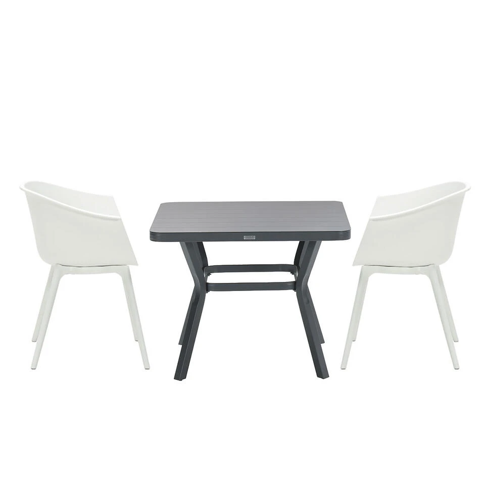 De stoelen zijn gemaakt van onderhoudsvrij kunststof dat erg stevig is. De stoel is zowel voor binnen als buiten uiterst geschikt. De Mina tuintafel is vervaardigd uit een onderhoudsvrij en weerbestendig aluminium. Dit aluminium is voorzien van een stevige laag poedercoating.