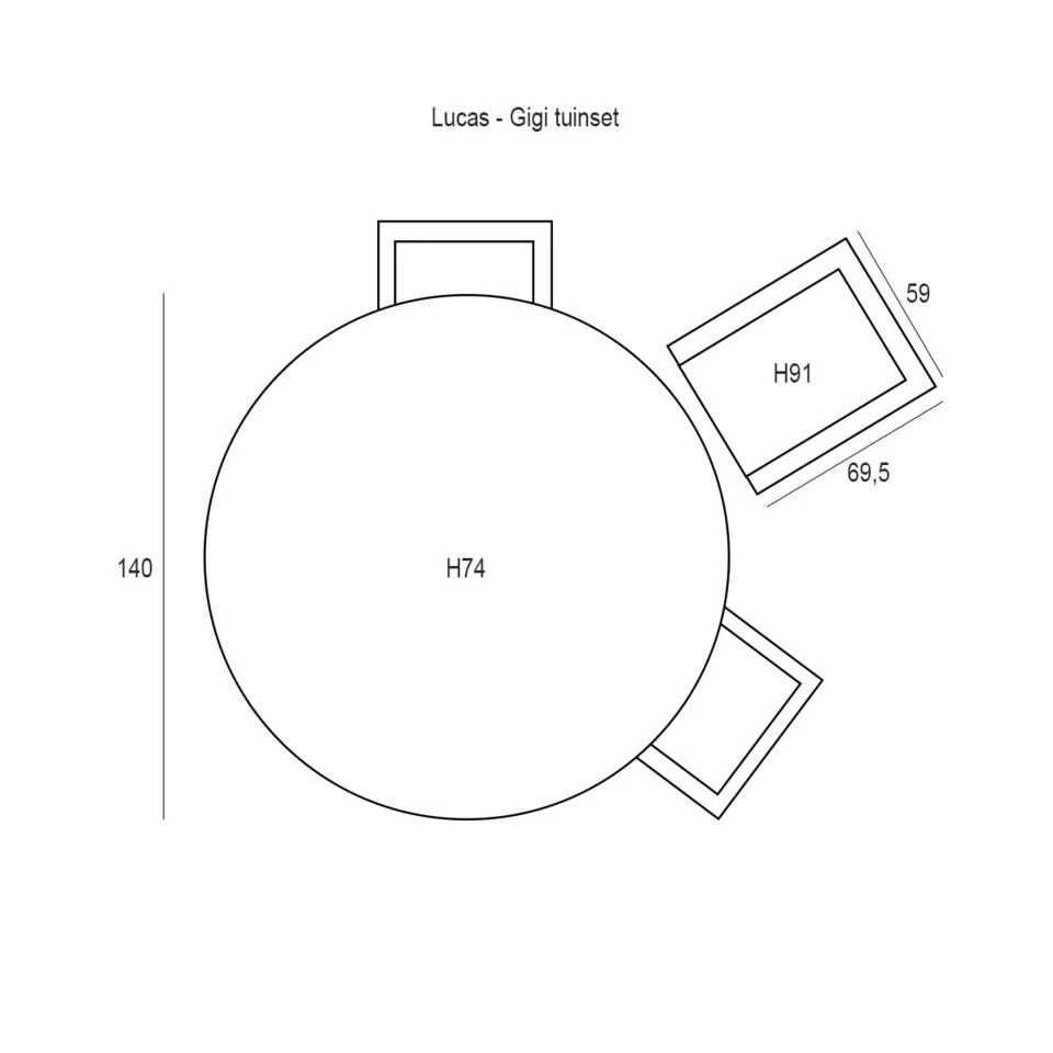 Garden Impressions Lucas Tuinset 6-delig – Gigi Tuintafel Ø140 Cm