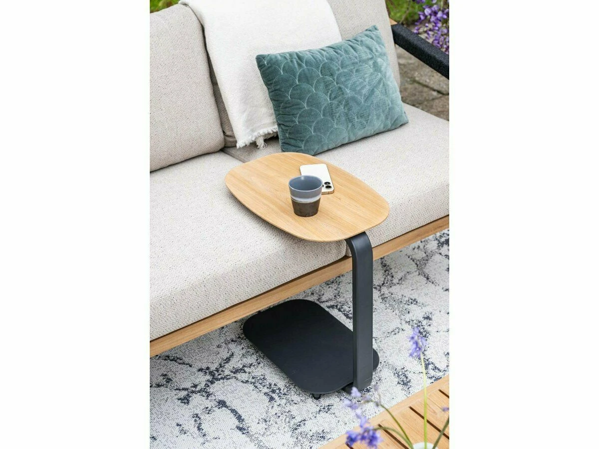 Deze laptoptafel is volledig gemaakt van hoogwaardig aluminium, wat zorgt voor een lichtgewicht en roestbestendige constructie. Het blad heeft een teak-optiek afwerking met afgeronde hoeken, waardoor het een warme en natuurlijke uitstraling krijgt zonder het onderhoud van echt hout. Met een afmeting van 45 x 30 x 51 cm past de tafel perfect in iedere buitenruimte. In tegenstelling tot andere bijzettafels biedt de Lucca bijzettafel niet alleen stevigheid en weerbestendigheid, maar ook een tijdloos design dat moeiteloos combineert met verschillende tuinmeubelen. Kortom, de ideale keuze voor wie functionaliteit en stijl wil combineren in de tuin of op het balkon!
