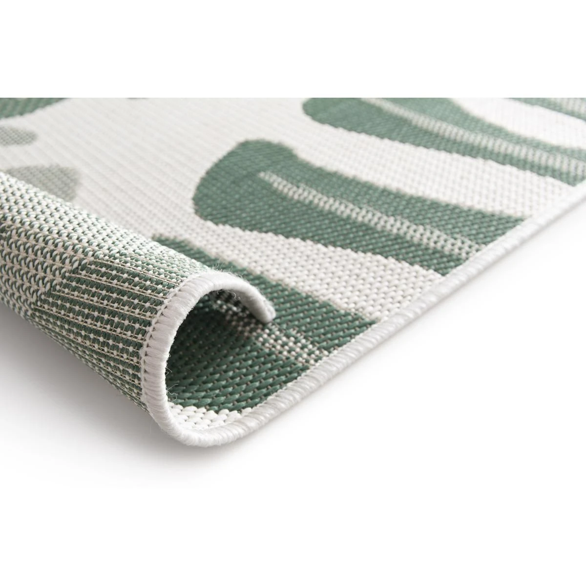 Zoek jij een mooi blad motief buitenkleed voor bij jouw tuinset of loungeset? Bekijk dan eens dit prachtige Naturalis buitenkleed van 160 bij 230 cm. Dit kleed is uitstekend om buiten te laten liggen en heeft weinig onderhoud nodig. Het buitenkleed is gemaakt van polypropyleen. Polypropyleen is een hoogwaardige kwaliteit kunststof en kan daarom goed buiten blijven liggen. Het buitenkleed kun je het beste schoon houden door het regelmatig te stofzuigen. Als er een vlek in het vloerkleed komt, dan is het verstandig om deze vlek met een vochtige doek te behandelen. Daarnaast is dit buitenkleed ook bestendig tegen hitte en vuur. Het buitenkleed is gewoven met verschillende tinten groen. Het is een speels design van Monstera bladeren, maar geeft daarmee erg veel sfeer in de tuin.