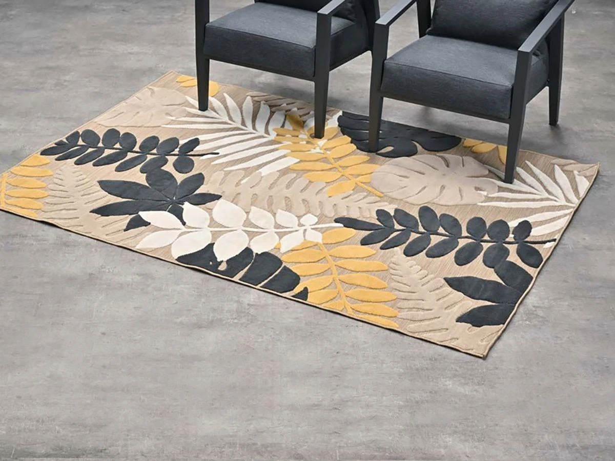 Het Garden Impressions Naturalis 160×230 Summer Leaf buitenkleed is antislip, kleurecht en kleurvast, bacterie afstotend, vlekbestendig, nauwelijks statisch, absorbeert nauwelijks vocht en is gemakkelijk te reinigen met een tuinslang.