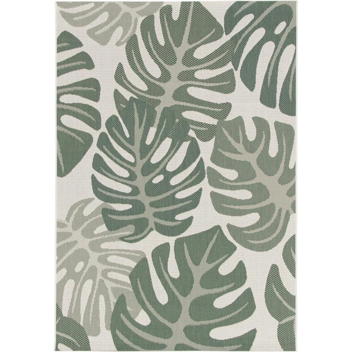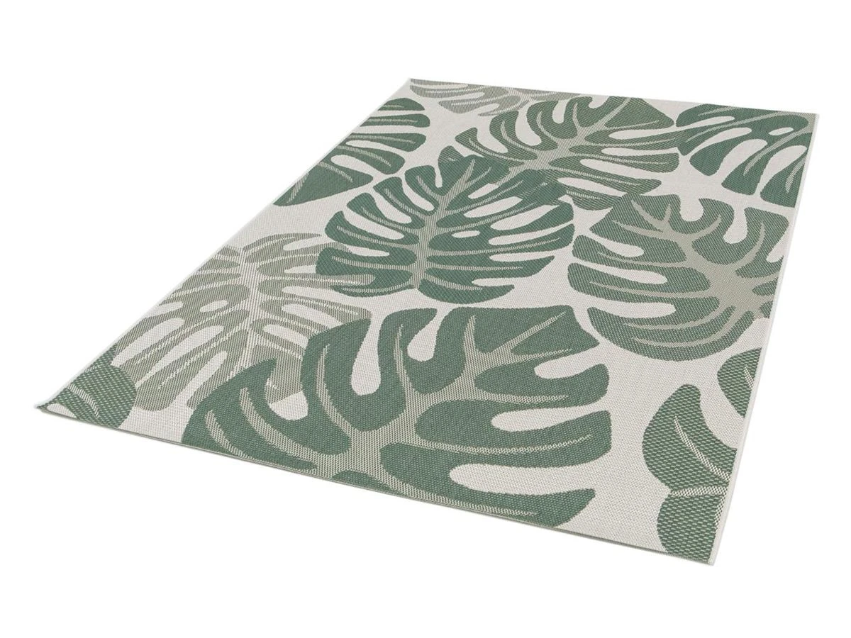 Zoek jij een mooi blad motief buitenkleed voor bij jouw tuinset of loungeset? Bekijk dan eens dit prachtige Naturalis buitenkleed van 200 bij 290 cm. Dit kleed is uitstekend om buiten te laten liggen en heeft weinig onderhoud nodig. Het buitenkleed is gemaakt van polypropyleen. Polypropyleen is een hoogwaardige kwaliteit kunststof en kan daarom goed buiten blijven liggen. Het buitenkleed kun je het beste schoon houden door het regelmatig te stofzuigen. Als er een vlek in het vloerkleed komt, dan is het verstandig om deze vlek met een vochtige doek te behandelen. Daarnaast is dit buitenkleed ook bestendig tegen hitte en vuur. Het buitenkleed is gewoven met verschillende tinten groen. Het is een speels design van Monstera bladeren, maar geeft daarmee erg veel sfeer in de tuin.