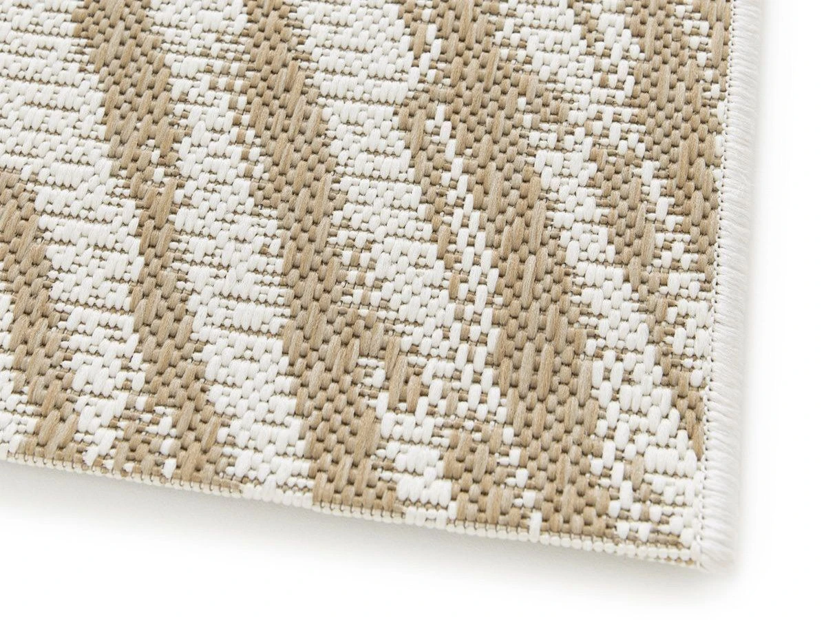 Het Garden Impressions Naturalis 200×290 Coconut Taupe buitenkleed is antislip, kleurecht en kleurvast, bacterie afstotend, vlekbestendig, nauwelijks statisch, absorbeert nauwelijks vocht en is gemakkelijk te reinigen met een tuinslang.