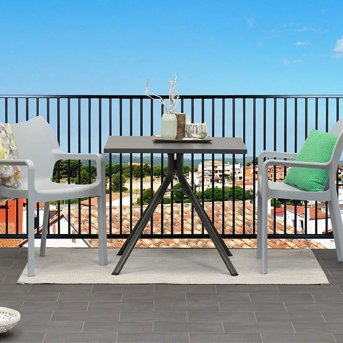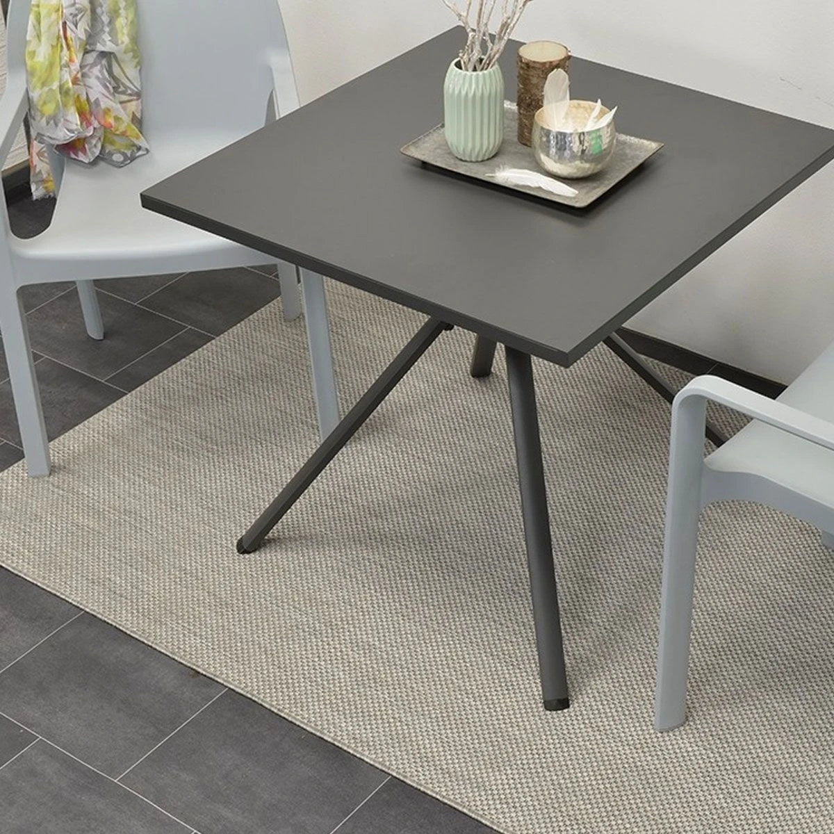 De Rimini tuintafel is een praktische, lichtgewicht tuintafel voor buiten. De tuintafel kan ook prima worden gebruikt in de horeca. De Rimini tuintafel is vervaardigd uit een onderhoudsvrij aluminium frame met een matte poedercoating. Het tafelblad is ook gemaakt van aluminium met een donkere poedercoating. De tuintafel is gemakkelijk schoon te maken met een sopje van groene zeep. De tuintafel is afkomstig van kwaliteitsmerk Garden Impressions. Bij de Rimini tuintafel passen allerlei soorten tuinstoelen goed. Een aluminium tuinstoel, een kunststof tuinstoel of een lichtgewicht tuinstoel. Het kan allemaal! Leuk voor op een klein terras of als horeca tafel. De afmeting van de tuintafel is: L 80 x B 80 x H 74 cm. Gemaakt met een aluminium frame met een matte poedercoating in de kleur carbon black.