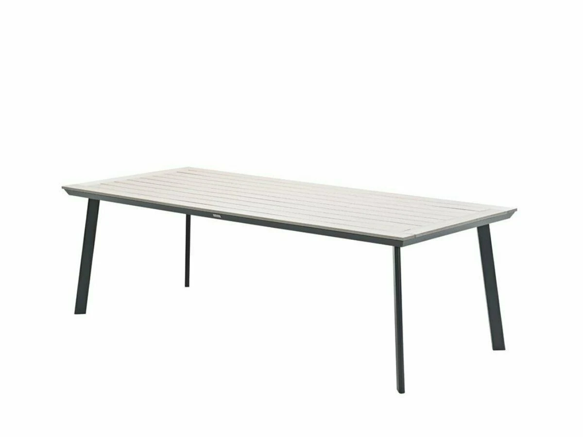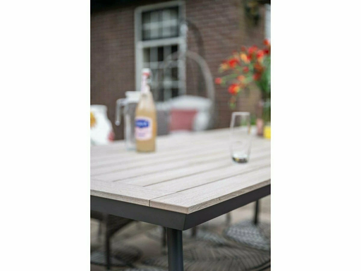 Deze tuintafel is ontworpen met oog voor detail en duurzaamheid. Het tafelblad is gemaakt van Polywood in de warme kleur Light Teak. Polywood is een materiaal dat gemaakt is van kunststof, maar eruitziet als hout, ook is Polywood onderhoudsarm en weerbestendig is. Het aluminium frame met poedercoating in antraciet biedt stabiliteit en een modern design. Met een afmeting van 230 x 100 x 73 cm biedt de tafel voldoende ruimte, terwijl de hoogte van 68 cm onder de tafel comfortabel plaats biedt aan stoelen. Voor optimaal behoud raden we aan de tafel te reinigen met een speciale Polywood cleaner en te behandelen met een Polywood Protector. Zo geniet je nóg langer van jouw stijlvolle tuintafel!